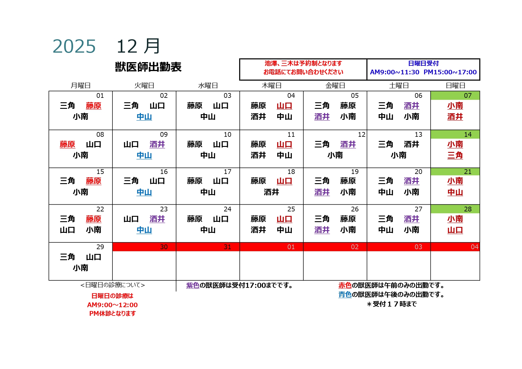 | 診療時間 | 月 | 火 | 水 | 木 | 金 | 土 | 日 |