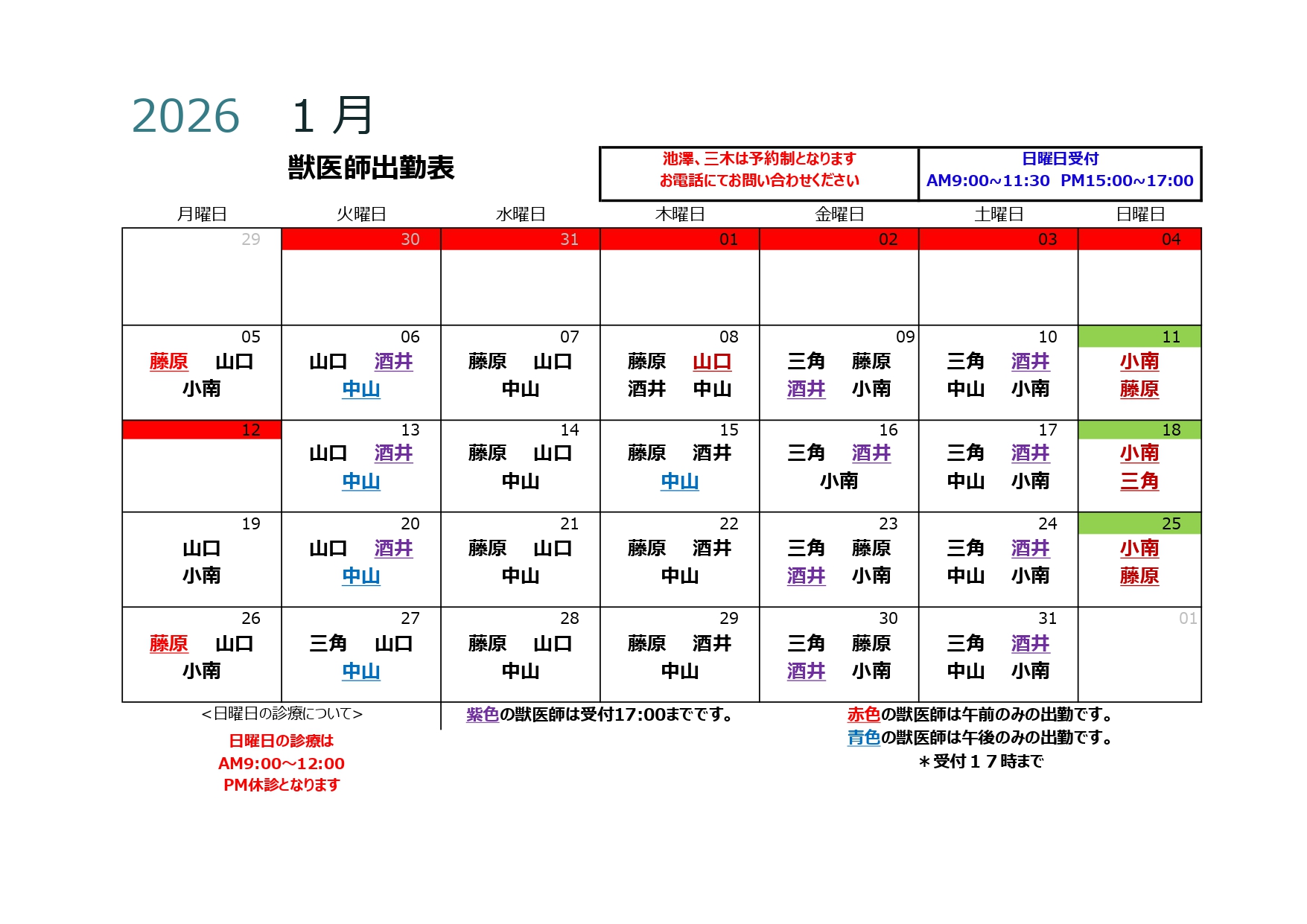 - 一部診療体制変更のお知らせ
